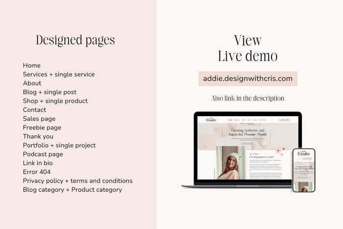 This theme is not compatible with Divi, Squarespace, Wix, Blogger, Genesis, Shopify or Showit.