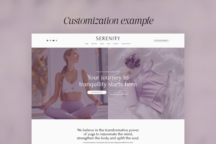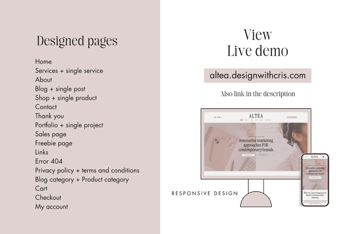 This theme is not compatible with Divi, Squarespace, Wix, Blogger, Genesis, Shopify or Showit.