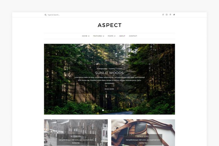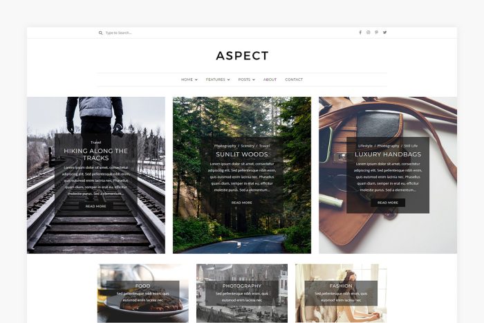 Aspect is a modern blog WordPress theme ideal for bloggers. Create your site with an easy to customize theme that is mobile responsive and SEO optimized.