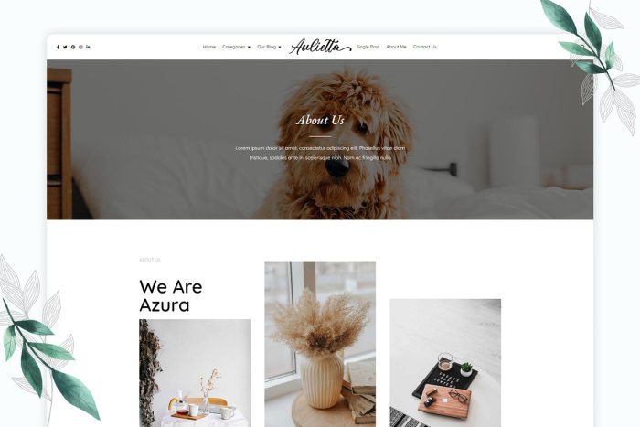 Aulietta WordPress theme is perfect for the modern trendsetter and elegant professional. Easy-to-read with device compatibility, the Aulietta theme is ideal for captivating your audience, highlighting your unique writing style, and as a platform for photo bloggers of the latest in fashion and vogue trends