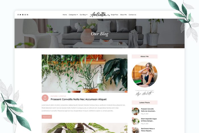 The Aulietta theme is clean and chic with multi layout options, a fully mobile responsive custom home page with a stylish slider and accessible widgets, tasteful ad space, attractive Instagram showcasing, and much more.