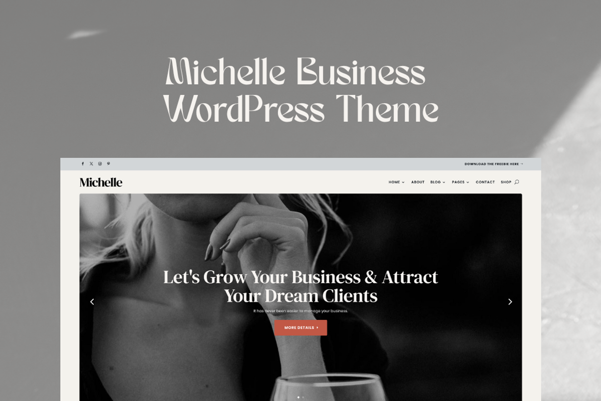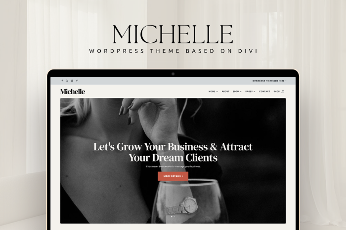 Michelle is a modern and elegant WordPress Theme based on Divi designed with business owners, coaches, creatives, and podcasters in mind who want their website to convert website visitors into clients.