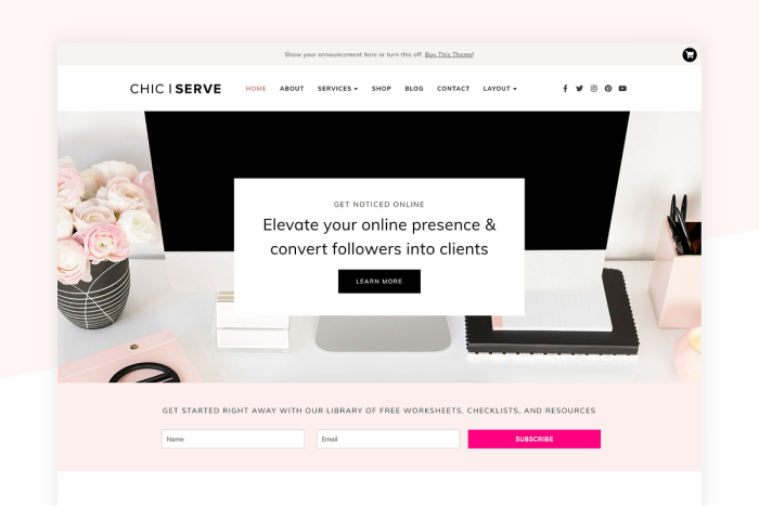 Meet ChicServe, an Elementor WordPress theme for females entrepreneurs running a service-based business.