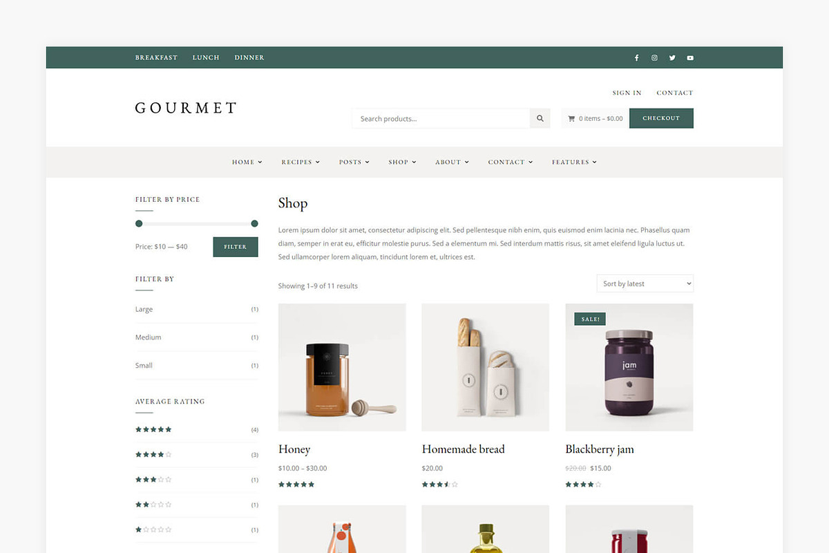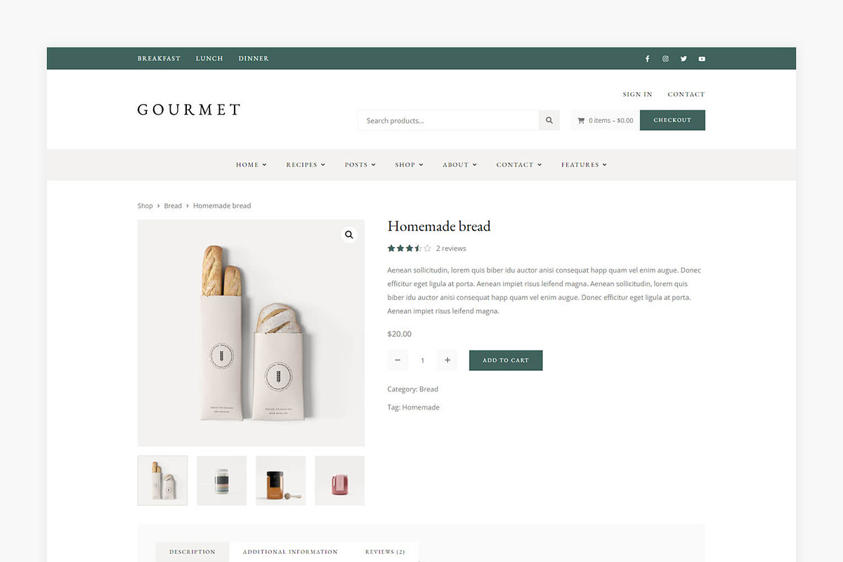 Create an online store with Gourmet which is fully compatible with WooCommerce.