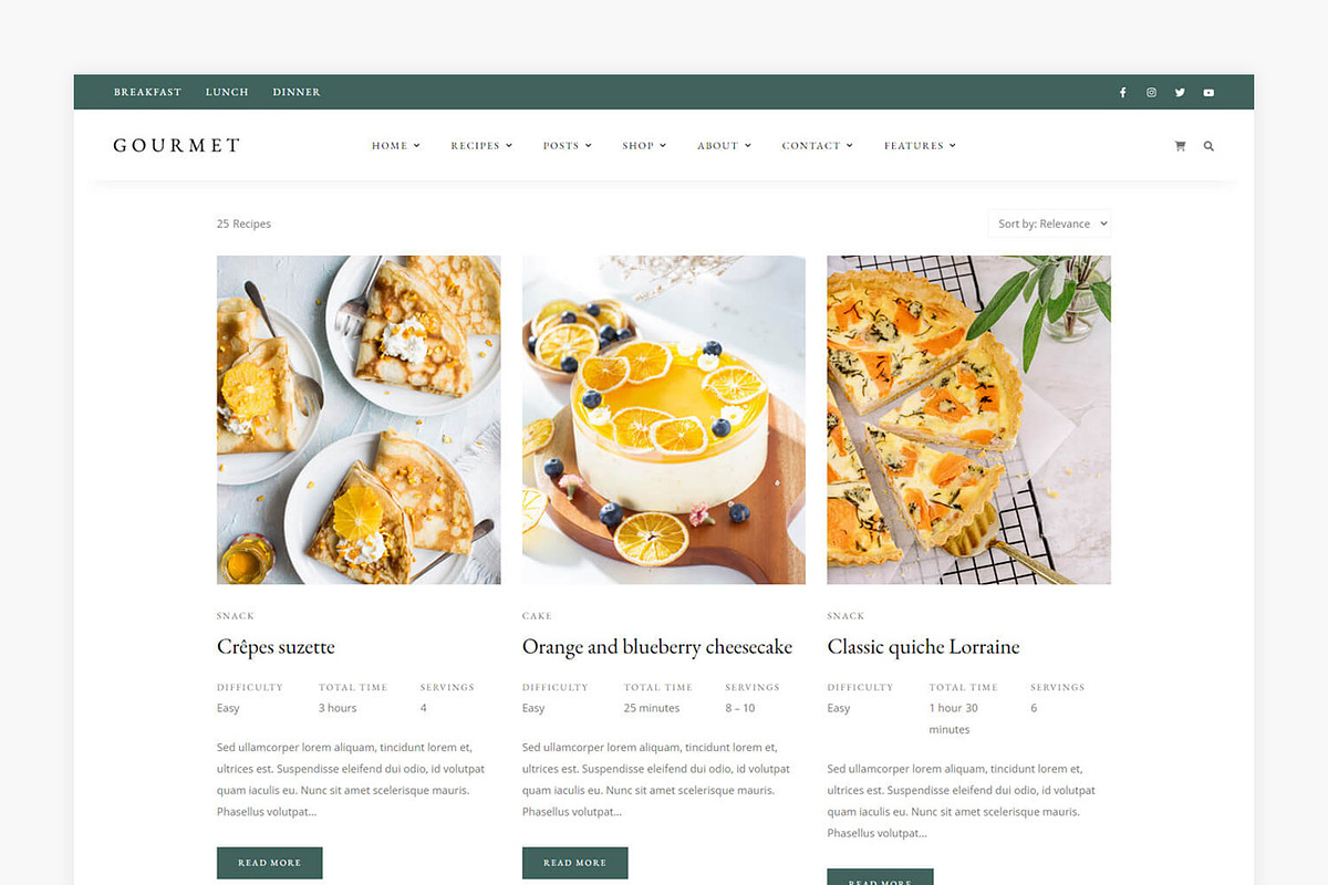 Gourmet is a feature-rich recipe & food blog WordPress theme. Create gorgeous recipes with ingredients, instructions, equipment, notes, nutrition, and more!