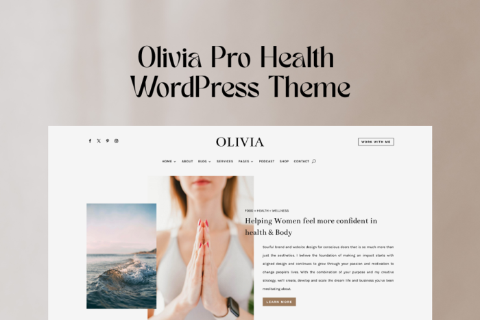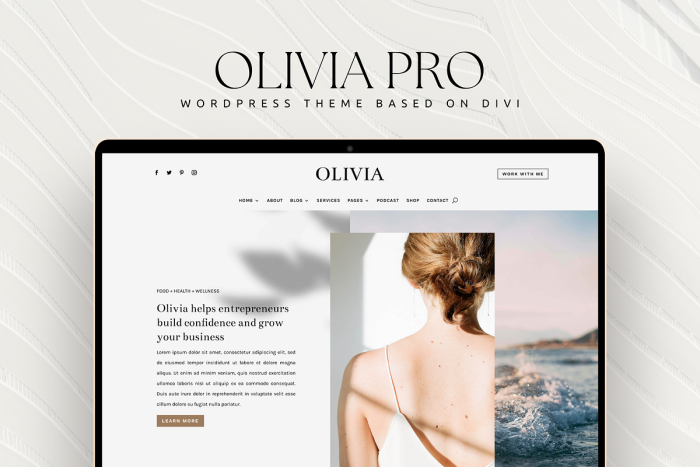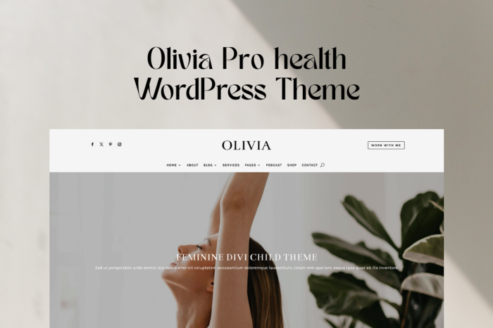 Olivia Pro is a beautiful and modern WordPress Theme based on Divi perfect for health and wellness coaches such as a podcast or yoga instructor.