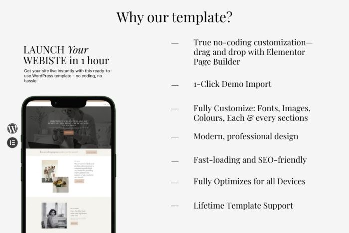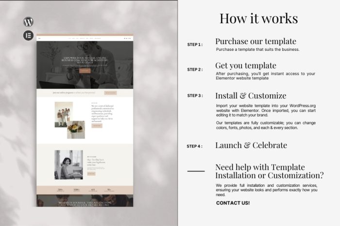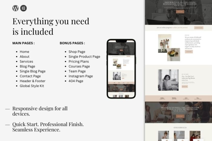 Launch a powerful, feminine, and professional online presence with Elite, a beautifully designed Elementor WordPress template kit for coaches and consultants. Perfect for life coaches, career advisors, business consultants, relationship coaches, and personal development mentors, Elite helps women entrepreneurs showcase their expertise and attract more clients.