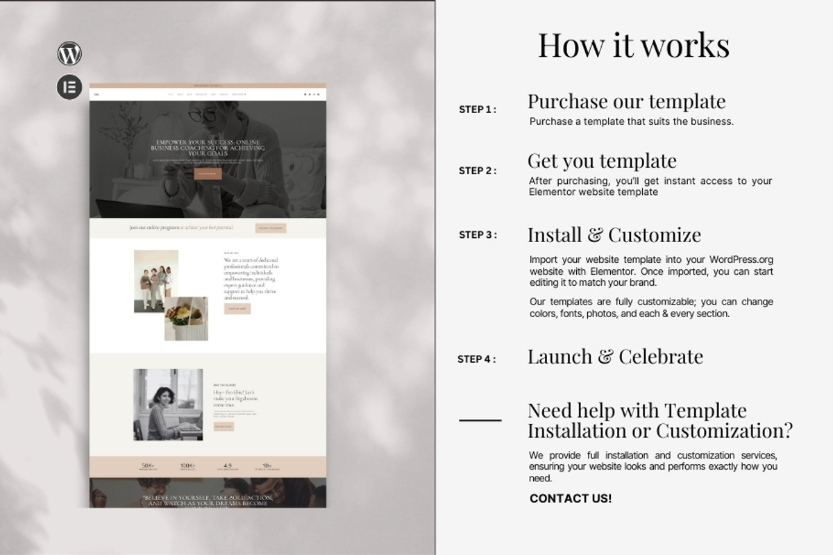 This WordPress Template works with a self-hosted WordPress site + Elementor page builderYou’ll need to purchase a domain and web hosting. & Elementor pro