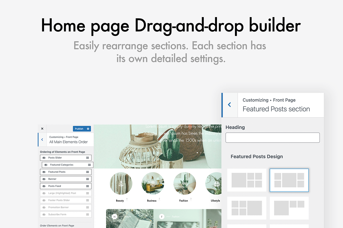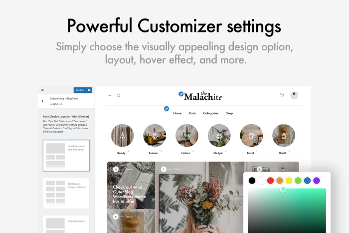 I’ve included loads of customization options using the WordPress Customizer, so you can tweak the design to your heart’s content. It’s a truly Custom WordPress Theme, allowing you to choose from different layouts, colors, and fonts to match your unique style.