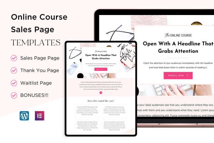 Fill up your online course with students who are eager to start learning from you with our Online Course Sales Page Templates!