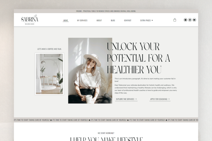 About The Lily Brown Elementor Template Kit is a stunning, modern WordPress template designed specifically for life coaches, wellness mentors,