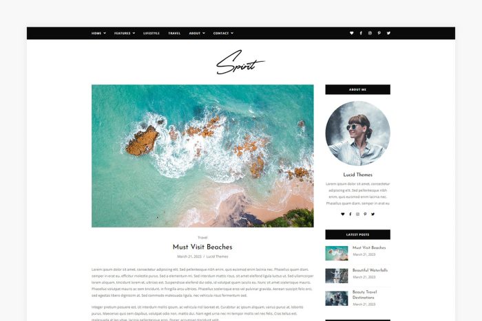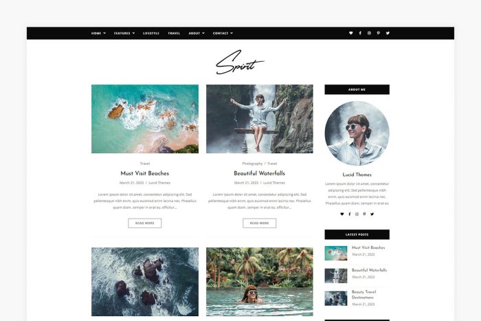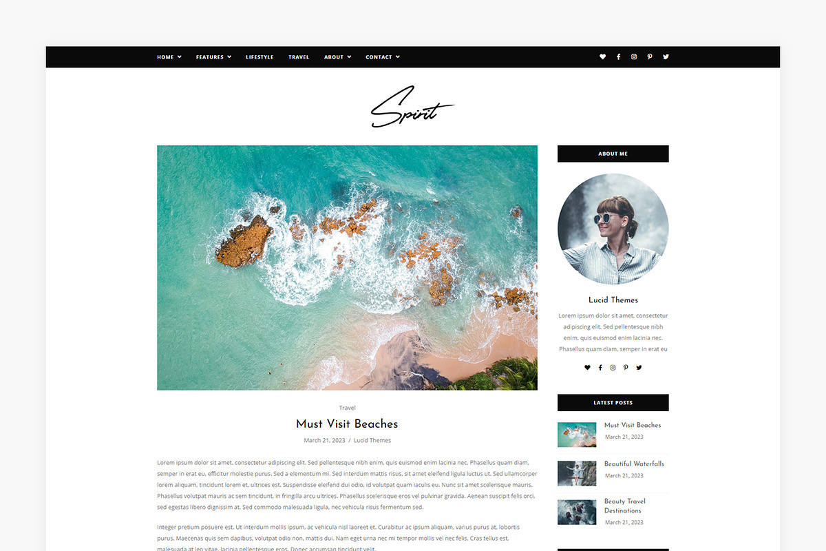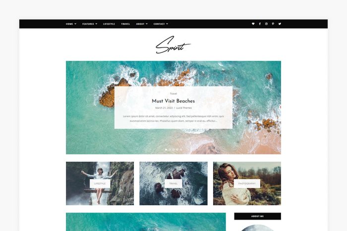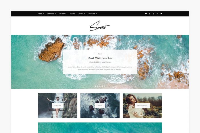 Spirit is a modern blog WordPress theme ideal for bloggers. Create your site with an easy to customize theme that is mobile responsive and SEO optimized.